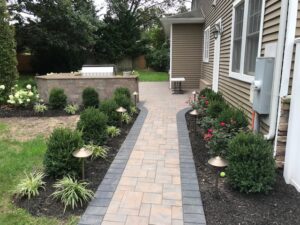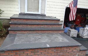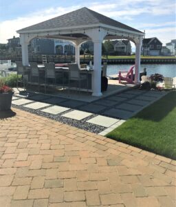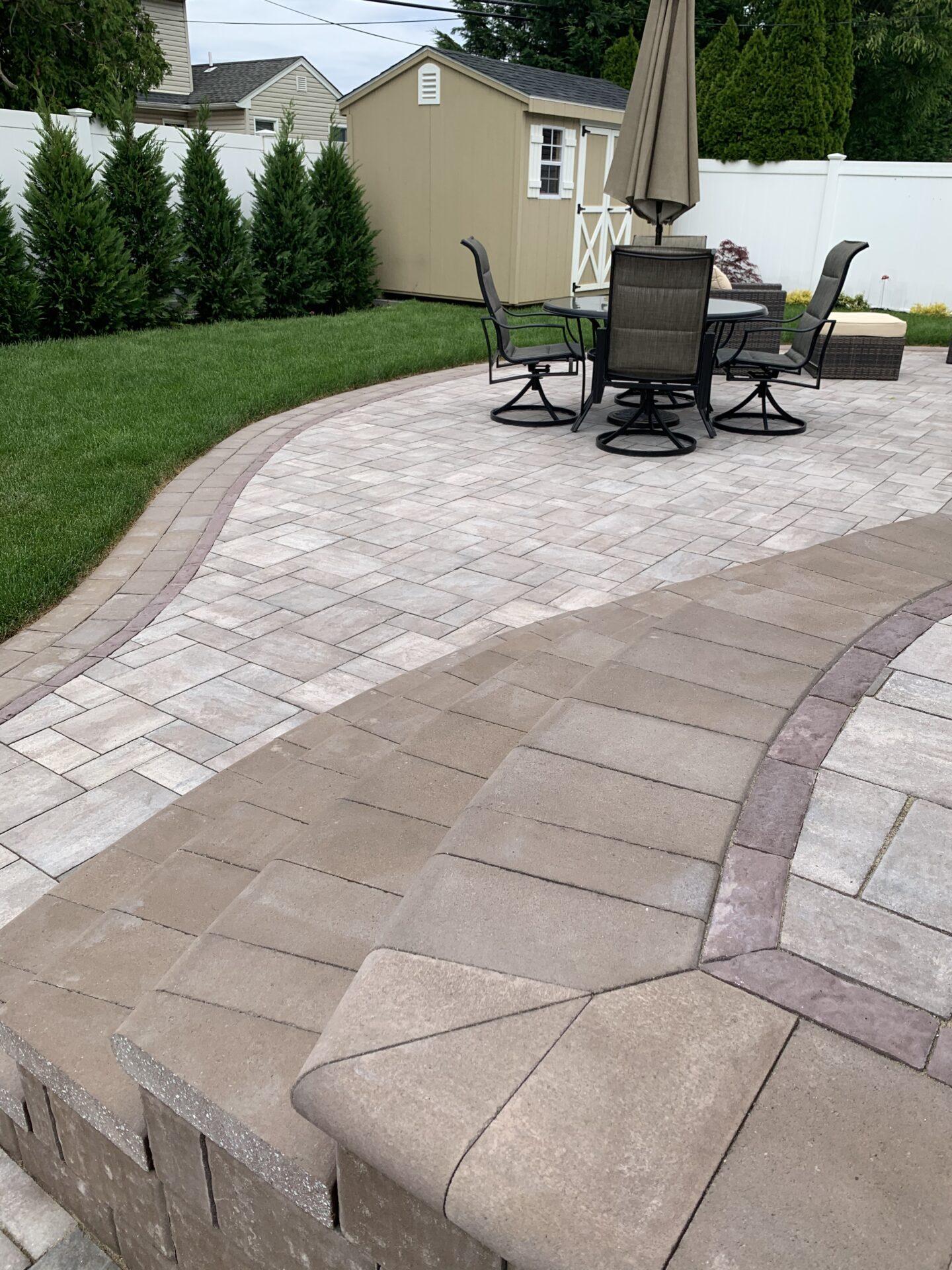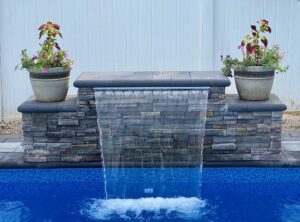 PAVER PATIO AROUND POOL WITH THREE PIECE LEDGE STONE NATURAL ONYX WITH ONYX BORDER